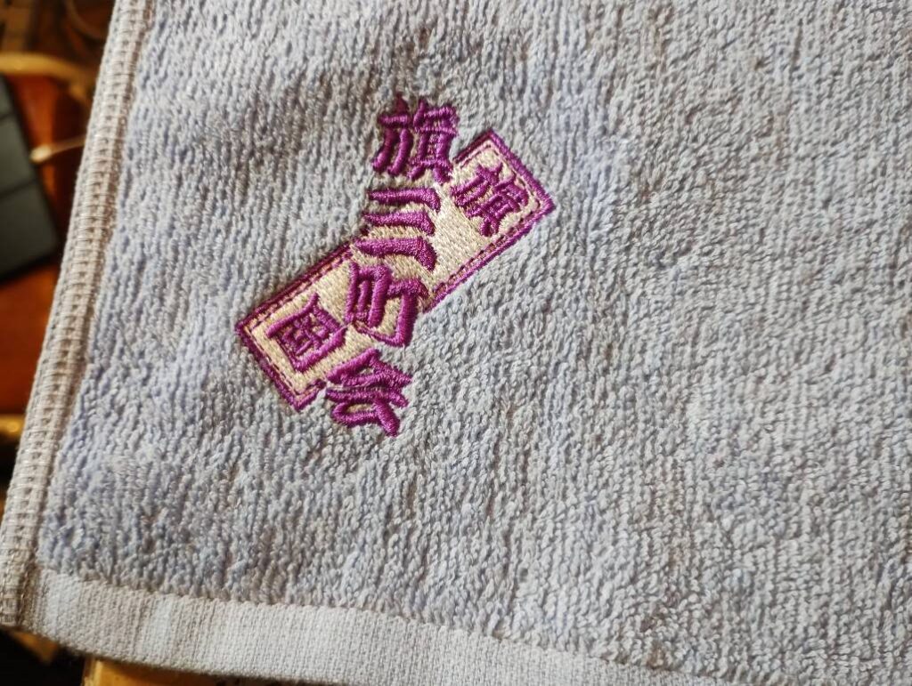 町会員募集や返礼品などに使用しています。パイルが短く刺繍のデザインが映えるように仕上げています。